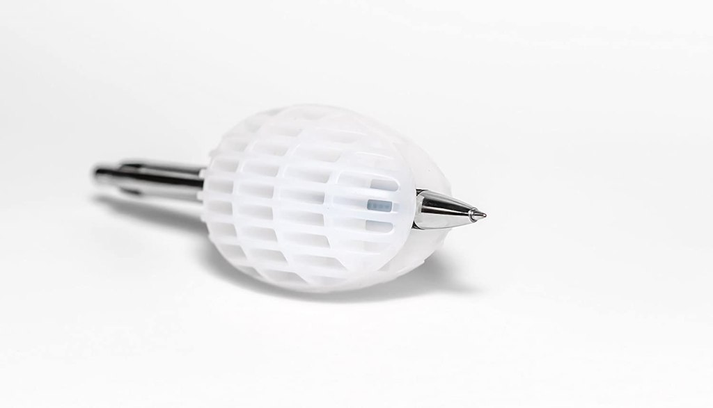 I particularly like this grip aid because you can use almost any pen or pencil you prefer. It works nicely with Apple pencils as well, which is helpful for my digital drawing.