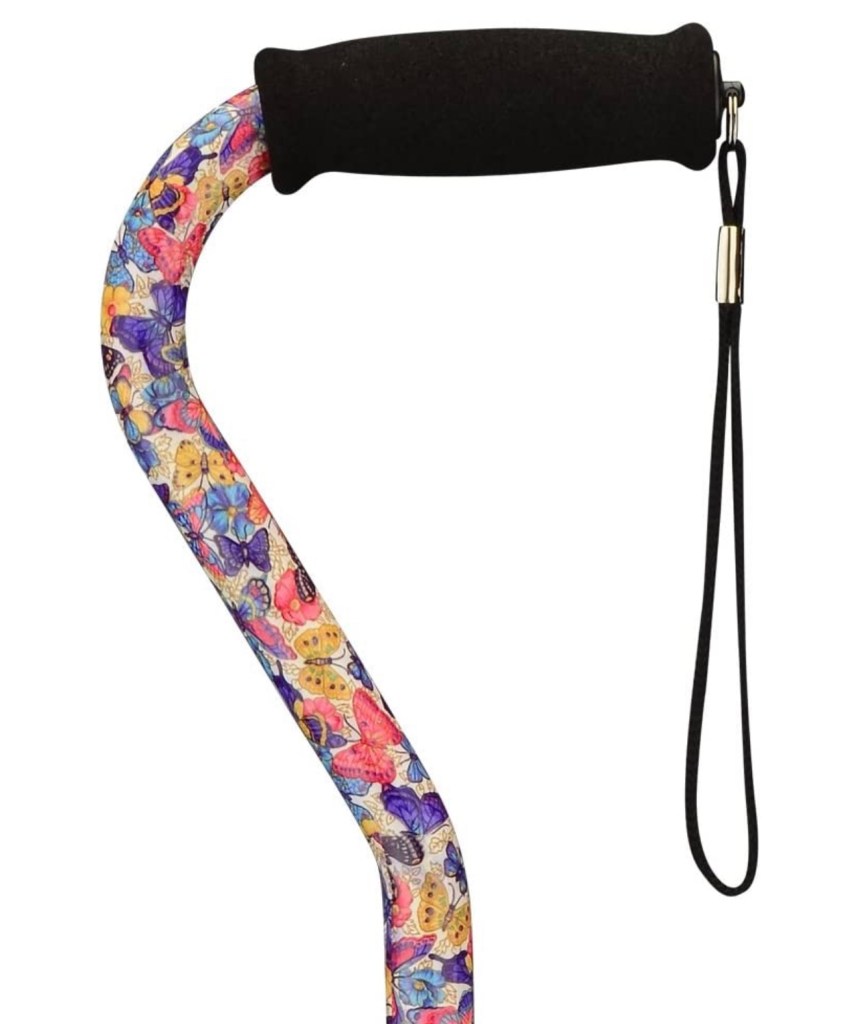 This NOVA Walking Cane with a foam grip and wrist strap is my favorite cane that I’ve tried. It’s made out of aluminum and is adjustable while being sturdy.
