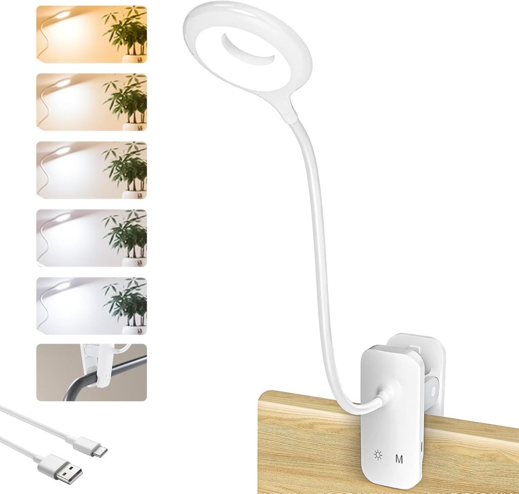 This clip on reading light is my absolute favorite I have ever used! I clip it to my desk to have sturdy, reliable lighting, especially when researching. It has multiple colors and brightness settings, it is rechargeable, and is great quality!